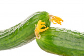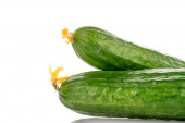 Zdjęcie "Trzy dojrzałe ogórki na drewnianej tablicy kuchennej, makro, odizolowane na białym tle." może być wykorzystywane do celów osobistych i komercyjnych zgodnie z warunkami zakupionej licencji Royalty-free. Obraz jest dostępny do pobrania w jakości wysokiej rozdzielczości do 5760x3840.