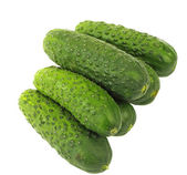 Kilka dojrzałych zielonych ogórków w jałowym worku, makro, izolowane na białym tle.
