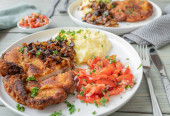 Pierś z kurczaka panierowanego z surówką na talerzu