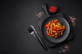 Zdjęcie "Pyszne smażone ryby okonia morskiego w postaci plastrów z przyprawami i ziołami na ceramicznej płycie na ciemnym betonowym tle" może być wykorzystywane do celów osobistych i komercyjnych zgodnie z warunkami zakupionej licencji Royalty-free. Obraz jest dostępny do pobrania w jakości wysokiej rozdzielczości do 5760x3840.