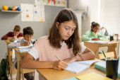 Zdjęcie "Obrażony uczeń szkoły średniej z książkami stojącymi przed kamerą ze smutnym wyrazem twarzy przeciwko dwóm uczniom znęcającym się nad nią" może być wykorzystywane do celów osobistych i komercyjnych zgodnie z warunkami zakupionej licencji Royalty-free. Obraz jest dostępny do pobrania w jakości wysokiej rozdzielczości do 5760x3840.
