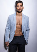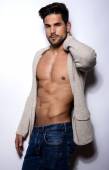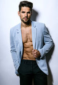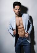 Przystojny mięśni młodych kulturystów pokazano jego mięśni