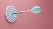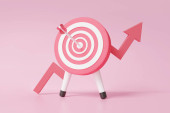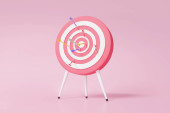 3D łuk, łucznik skupić cel planowania klientów marketingu biznesowego wzrostu finansowego na tle błękitnego pastelowego nieba. koncepcja edukacji inwestycyjnej. strategia wizji osiągnięć. Ilustracja 3D renderowania