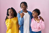 Zdjęcie "Młoda afrykańska para stojąca nad niebieskim tłem szczęśliwa twarz uśmiechnięta skrzyżowanymi ramionami patrzącymi w kamerę. osoba pozytywna. " może być wykorzystywane do celów osobistych i komercyjnych zgodnie z warunkami zakupionej licencji Royalty-free. Obraz jest dostępny do pobrania w jakości wysokiej rozdzielczości do 5760x3840.