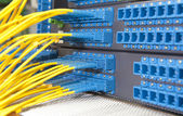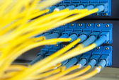 strzał kabli sieciowych i serwerów w centrum danych technologii