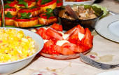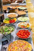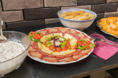Pięknie przygotowany bufet z pysznymi przekąskami, daniami i deserami z okazji wyjątkowego wydarzenia z elegancją.