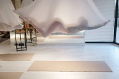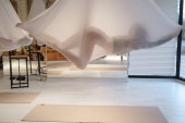 Zdjęcie "Sylwetka leżącej, wysportowanej dziewczyny całkowicie ukrytej przez czerwony hamak podczas relaksujących chwil w klasie antygrawitacyjnej jogi" może być wykorzystywane do celów osobistych i komercyjnych zgodnie z warunkami zakupionej licencji Royalty-free. Obraz jest dostępny do pobrania w jakości wysokiej rozdzielczości do 5760x3840.