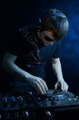 młody DJ gra muzykę na białym tle