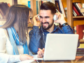 piękna para studentów spędzających czas w bibliotece