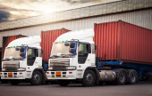 Zdjęcie "Naczepa Ciężarówki na drodze z Sunset Sky. Ciężarówki kontenerowe. Transport samochodów dostawczych. Przesyłka. Ciągnik spalinowy. Logistyka samochodów ciężarowych, Transport towarowy." może być wykorzystywane do celów osobistych i komercyjnych zgodnie z warunkami zakupionej licencji Royalty-free. Obraz jest dostępny do pobrania w jakości wysokiej rozdzielczości do 5760x3840.