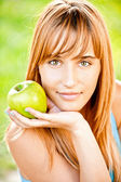 Zdjęcie "Młoda atrakcyjna kobieta trzyma czerwone jabłko" może być wykorzystywane do celów osobistych i komercyjnych zgodnie z warunkami zakupionej licencji Royalty-free. Obraz jest dostępny do pobrania w jakości wysokiej rozdzielczości do 5760x3840.