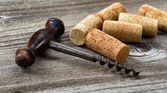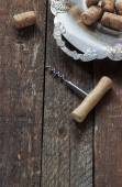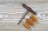 Antyczne korkociąg z używane korki na wieku drewna