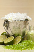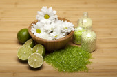 Zdjęcie "Spa - kwiaty, kąpieli soli i dojrzałe limonki" może być wykorzystywane do celów osobistych i komercyjnych zgodnie z warunkami zakupionej licencji Royalty-free. Obraz jest dostępny do pobrania w jakości wysokiej rozdzielczości do 5760x3840.