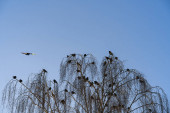 Zdjęcie "Wiosną, wiele starych butów wisi wysoko na gałęziach drzewa na tle błękitnego nieba na świeżym powietrzu, słoneczny wiosenny dzień, błękitne niebo w tle" może być wykorzystywane do celów osobistych i komercyjnych zgodnie z warunkami zakupionej licencji Royalty-free. Obraz jest dostępny do pobrania w jakości wysokiej rozdzielczości do 5760x3840.