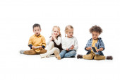 Zdjęcie "Poważne międzyrasowe dzieci w ubraniach casual mając pomysł, przytulanie i patrząc w obiektyw podczas obchodów Dnia Ochrony Dzieci na tle khaki" może być wykorzystywane do celów osobistych i komercyjnych zgodnie z warunkami zakupionej licencji Royalty-free. Obraz jest dostępny do pobrania w jakości wysokiej rozdzielczości do 5760x3840.