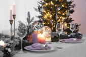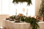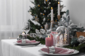 Zdjęcie "Piękny stół z świątecznym wystrojem wnętrz" może być wykorzystywane do celów osobistych i komercyjnych zgodnie z warunkami zakupionej licencji Royalty-free. Obraz jest dostępny do pobrania w jakości wysokiej rozdzielczości do 5760x3840.
