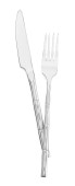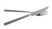 Fork and knife isolated on white. Stylish shiny cutlery set