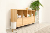 Zdjęcie "Stylowa drewniana szafka przy oknie" może być wykorzystywane do celów osobistych i komercyjnych zgodnie z warunkami zakupionej licencji Royalty-free. Obraz jest dostępny do pobrania w jakości wysokiej rozdzielczości do 5760x3840.