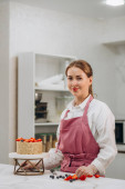 Uśmiechnięta kobieta sprawdza i wybiera nową kuchnię lub kran kąpielowy w sklepie z narzędziami