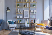 Zdjęcie "eleganckie kreatywne nowoczesne modne wnętrze przestronnego studia w stylu skandynawskim z miejscami do siedzenia i spania" może być wykorzystywane do celów osobistych i komercyjnych zgodnie z warunkami zakupionej licencji Royalty-free. Obraz jest dostępny do pobrania w jakości wysokiej rozdzielczości do 5760x3840.