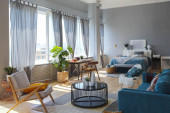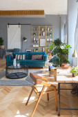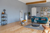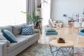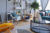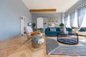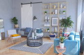 Zdjęcie "eleganckie kreatywne nowoczesne modne wnętrze przestronnego studia w stylu skandynawskim z miejscami do siedzenia i spania" może być wykorzystywane do celów osobistych i komercyjnych zgodnie z warunkami zakupionej licencji Royalty-free. Obraz jest dostępny do pobrania w jakości wysokiej rozdzielczości do 5760x3840.