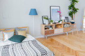Zdjęcie "eleganckie kreatywne nowoczesne modne wnętrze przestronnego studia w stylu skandynawskim z miejscami do siedzenia i spania" może być wykorzystywane do celów osobistych i komercyjnych zgodnie z warunkami zakupionej licencji Royalty-free. Obraz jest dostępny do pobrania w jakości wysokiej rozdzielczości do 5760x3840.