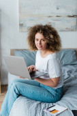 Zdjęcie "szczęśliwa młoda kobieta w okularach, krótkie włosy i grzywka gospodarstwa i korzystania z laptopa podczas patrzenia w aparat fotograficzny i pracy z domu w nowoczesnej kuchni, niewyraźne tło, zdalny styl życia, freelancer" może być wykorzystywane do celów osobistych i komercyjnych zgodnie z warunkami zakupionej licencji Royalty-free. Obraz jest dostępny do pobrania w jakości wysokiej rozdzielczości do 5760x3840.