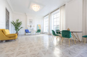 Zdjęcie "luksusowe wnętrze przestronnego mieszkania w starym XIX-wiecznym zabytkowym domu z nowoczesnymi meblami. wysoki sufit i ściany ozdobione są sztukaterią" może być wykorzystywane do celów osobistych i komercyjnych zgodnie z warunkami zakupionej licencji Royalty-free. Obraz jest dostępny do pobrania w jakości wysokiej rozdzielczości do 5760x3840.