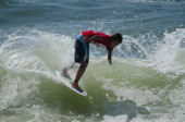 Kuantan - 29 grudnia: niezidentyfikowane internauta w akcji łapania fale wieczorem na plaży Balok Teluk 29 grudnia, 2012 w Kuantan, Pahang, Malezja.