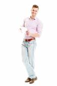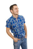młody człowiek kontemplacji - portretu pełnometrażowego na białym tle