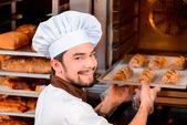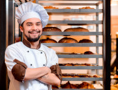 Przystojny kucharz w kuchni