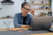 Zdjęcie "Dorosła kobieta pisze w notatniku przy stole z laptopem. Dojrzały przedsiębiorca." może być wykorzystywane do celów osobistych i komercyjnych zgodnie z warunkami zakupionej licencji Royalty-free. Obraz jest dostępny do pobrania w jakości wysokiej rozdzielczości do 5760x3840.