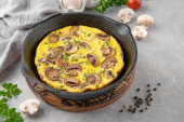 Zdjęcie "Omelette z grzybami i ziołami na patelni na białym drewnianym tle. Zdrowe śniadanie. Widok góry. Przestrzeń kopiowania" może być wykorzystywane do celów osobistych i komercyjnych zgodnie z warunkami zakupionej licencji Royalty-free. Obraz jest dostępny do pobrania w jakości wysokiej rozdzielczości do 5760x3840.