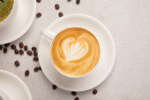 Izolowana filiżanka gorącej kawy cappuccino ze sztuką