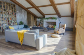 Zdjęcie "nowoczesny luksusowy design brutalnego wnętrza mieszkania z łukami w stylu średniowiecznego zamku z jasnymi akcentami. bezpłatny układ, aneks kuchenny, część wypoczynkowa i jadalna." może być wykorzystywane do celów osobistych i komercyjnych zgodnie z warunkami zakupionej licencji Royalty-free. Obraz jest dostępny do pobrania w jakości wysokiej rozdzielczości do 5760x3840.