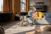 Zdjęcie "nowoczesny luksusowy design brutalnego wnętrza mieszkania z łukami w stylu średniowiecznego zamku z jasnymi akcentami. bezpłatny układ, aneks kuchenny, część wypoczynkowa i jadalna." może być wykorzystywane do celów osobistych i komercyjnych zgodnie z warunkami zakupionej licencji Royalty-free. Obraz jest dostępny do pobrania w jakości wysokiej rozdzielczości do 5760x3840.