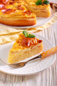 Zdjęcie "Brzoskwiniowe i migdałowe ciasto, serwowane" może być wykorzystywane do celów osobistych i komercyjnych zgodnie z warunkami zakupionej licencji Royalty-free. Obraz jest dostępny do pobrania w jakości wysokiej rozdzielczości do 5760x3840.