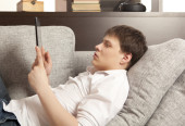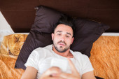 Mężczyzna nagrania wiadomości głosowej na telefon komórkowy
