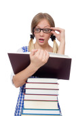 Zdjęcie "Śmieszny student z stosem książek" może być wykorzystywane do celów osobistych i komercyjnych zgodnie z warunkami zakupionej licencji Royalty-free. Obraz jest dostępny do pobrania w jakości wysokiej rozdzielczości do 5760x3840.