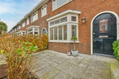 zewnętrzny widok na dom z roślinami i krzewami na podwórku, w słoneczny dzień w domu
