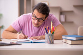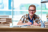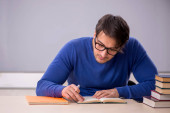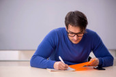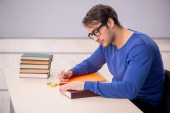 Zdjęcie "Młody student przygotowujący się do egzaminów w klasie" może być wykorzystywane do celów osobistych i komercyjnych zgodnie z warunkami zakupionej licencji Royalty-free. Obraz jest dostępny do pobrania w jakości wysokiej rozdzielczości do 5760x3840.