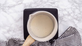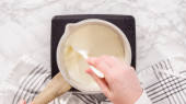 Leżeć płasko. Przygotowanie ganache czekolady w małym rondlu.
