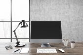 Zdjęcie "Nowoczesnej pracy w biurze z czarnej ścianie" może być wykorzystywane do celów osobistych i komercyjnych zgodnie z warunkami zakupionej licencji Royalty-free. Obraz jest dostępny do pobrania w jakości wysokiej rozdzielczości do 5760x3840.