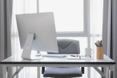 Zdjęcie "Nowoczesnej pracy w biurze z białej ścianie" może być wykorzystywane do celów osobistych i komercyjnych zgodnie z warunkami zakupionej licencji Royalty-free. Obraz jest dostępny do pobrania w jakości wysokiej rozdzielczości do 5760x3840.