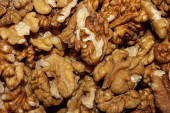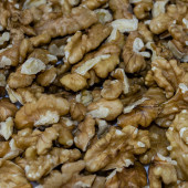 Orzech. Jądro orzecha włoskiego zbliżenie tła żywności. Teksturę. Widok góry. Kopiuj baner kosmiczny