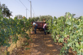 Pracownik cięcie winogron