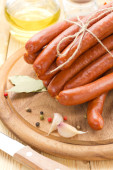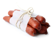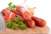 Asortyment cienkiej kiełbasy z sałata sałatka z liści, na białym tle