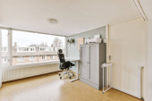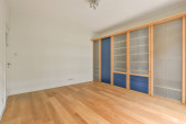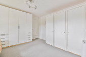 Zdjęcie "Pusty pokój z białymi szafkami i szafkami na ścianie na tym zdjęciu jest zrobiony z najwyższego piętra" może być wykorzystywane do celów osobistych i komercyjnych zgodnie z warunkami zakupionej licencji Royalty-free. Obraz jest dostępny do pobrania w jakości wysokiej rozdzielczości do 5760x3840.