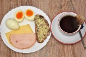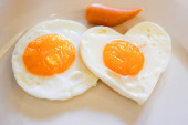 smażone jajka i ogórki na czarnej talerzu z widelcem