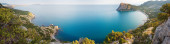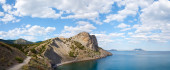 Letnie skaliste wybrzeże z sosnami (Novyj Svit Reserve, Krym, Ukraina).